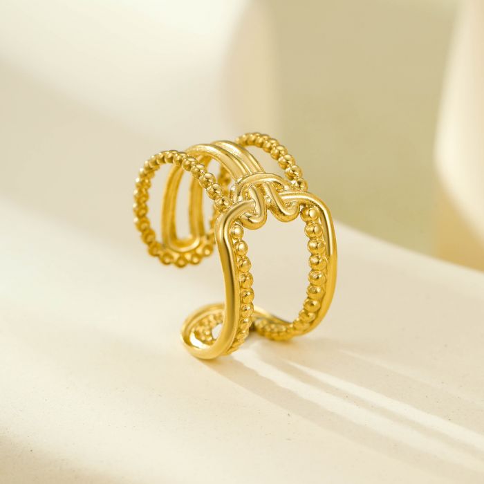 Circular, niche, open ring 18k gold, non-fading, multi-layer, geometric, hollow, versatile, ring